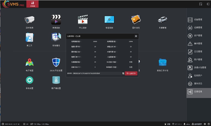导入注册文件后,,在主控面板-->服务状态打开,重启一下第一个服务模块Svideoproxy,即可